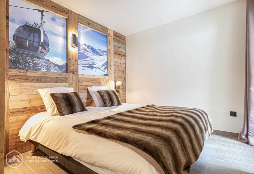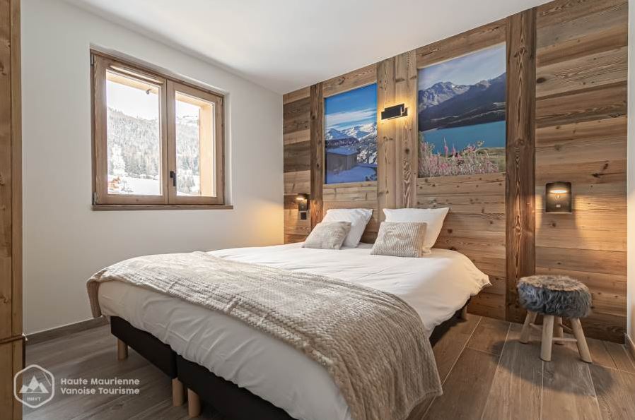 Vous entrez au Rez de chaussée par une entrée commune avec digicode. Vous accédez à cet appartement directement de plein pied. Il est constitué d’une entrée avec ses commodités, une grande pièce comprenant la cuisine le séjour et un coin cocooning avec écran plat et poêle à granules mis à votre disposition. A l’extérieur, vous pourrez vous reposer sur le balcon face à l’Arc. Vous profiterez d’un SPA individuel accessible depuis l’une des chambres ou le séjour. Vous disposez d’une grande chambre en 160*200 et sa salle de bain. De l’autre côté, vous avez le coin nuit avec 3 chambres en 160*200 et un espace montagne de 2 lits superposés en 90*200 et ses salles de bains avec douche en 90*120. Composition : En supplément : le ménage de 150€ et la taxe de séjour 2.50€ x nbre d'adultes de +18ans /jours Ouvert toute l'année |