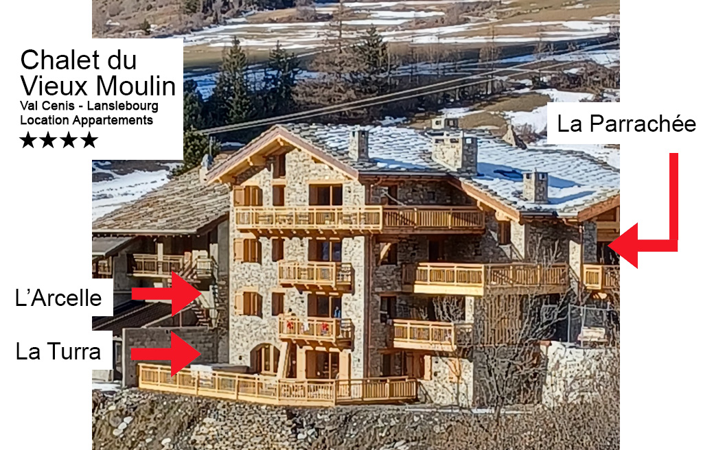 In Savoie, in Val Cenis, opposite the ski lifts, the Chalet du Vieux Moulin is located between Lanslebourg and Lanslevillard, at Hameau des Champs - 73480 VAL CENIS Lanslebourg.