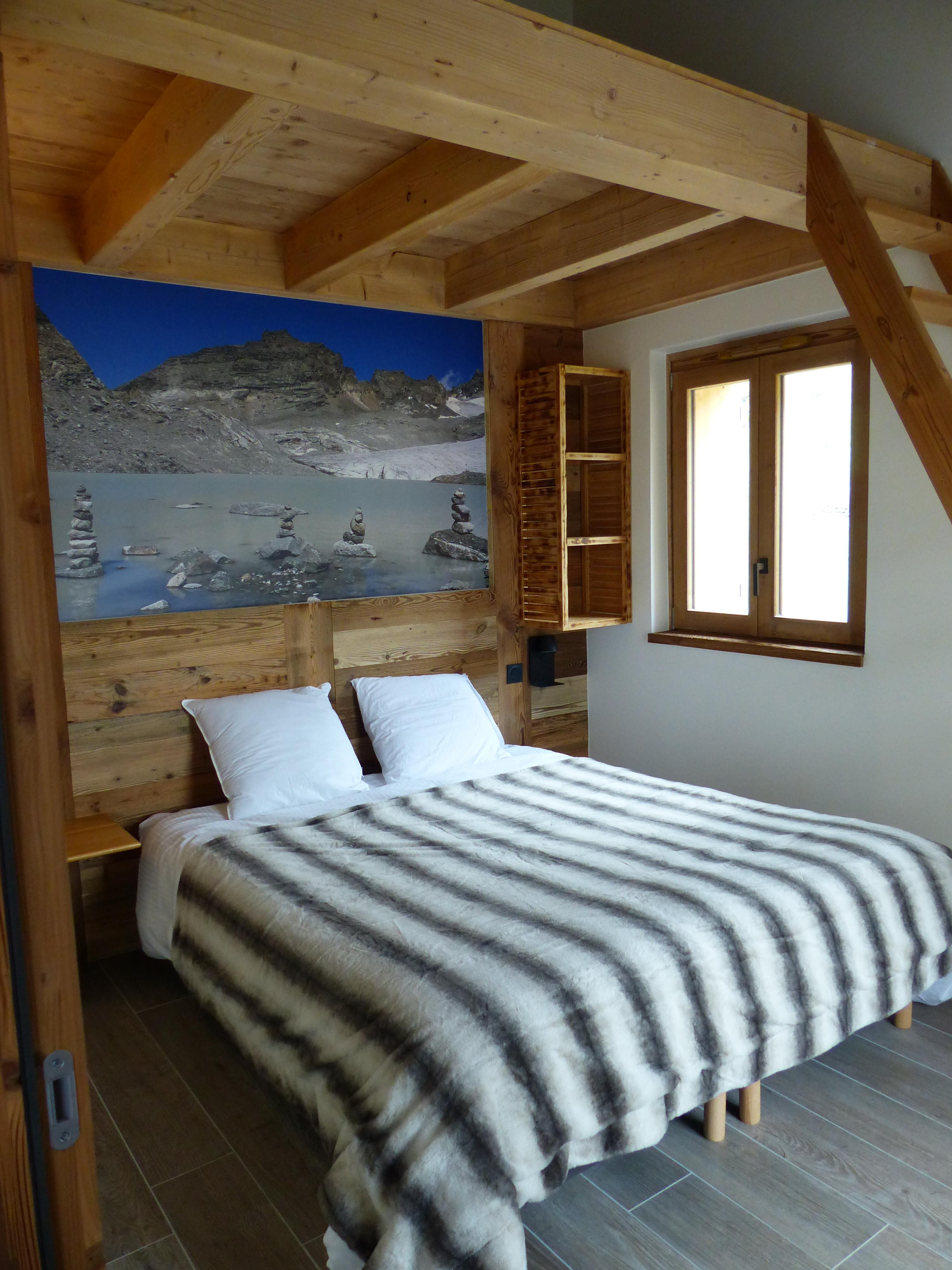 - Un séjour orienté Est - Une chambre avec lit double en 160x200 ou 2x80x200 avec 1 lit simple en mezzanine au dessus de 90x200 - Une mezzanine avec 2 lits superposés 90x200 +1 simple en 90x200 et un lavabo - Une terrasse à l'abri pour déjeuner et un balcon pour une chaise longue orientées à l'Est avec vue sur les pistes de ski et les massifs environnants du parc de la vanoise